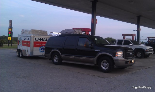A very heavy trailer and many emotions/thoughts running through my mind. Mr. Man is in “the mode” – you know the “yes I have been up for 24 hours, have packed and loaded all of our belongings but I refuse to pull over and sleep because we are only 4 hours away (and then we get to unload the trailer into a storage unit before we surprise each of our parents with vists because nobody knows we are coming back lol!)”. Think he is on his 4th rockstar/redbull… am I the only weird one with a husband like that? Lol