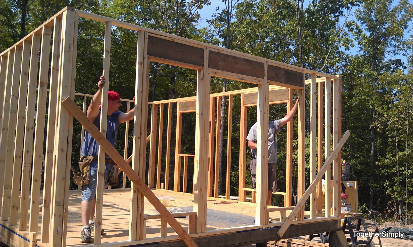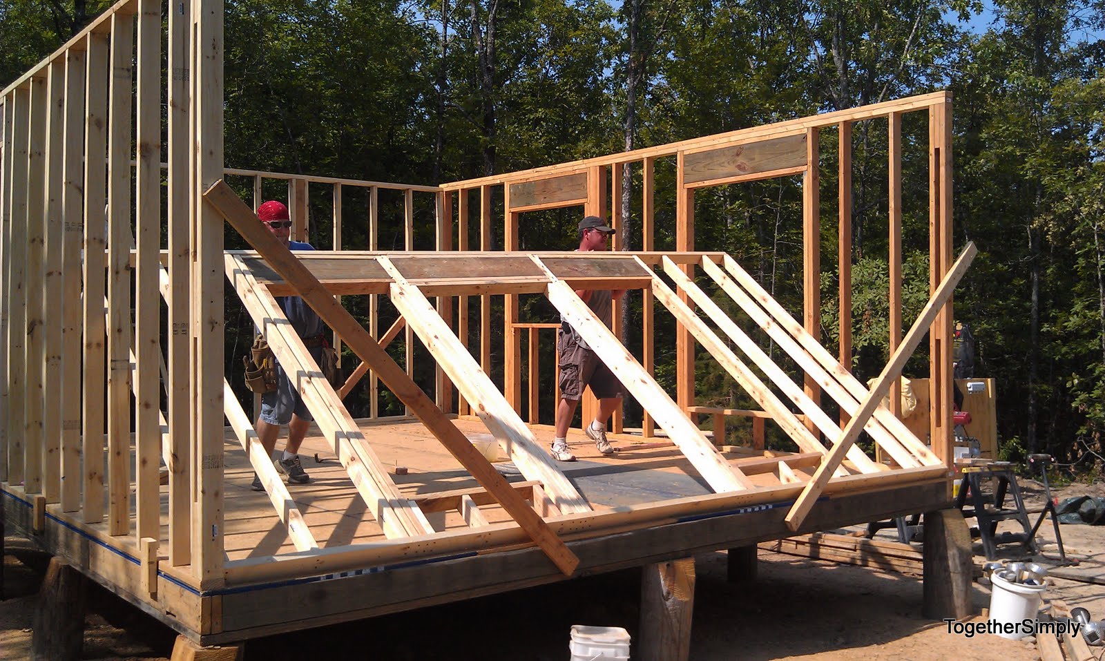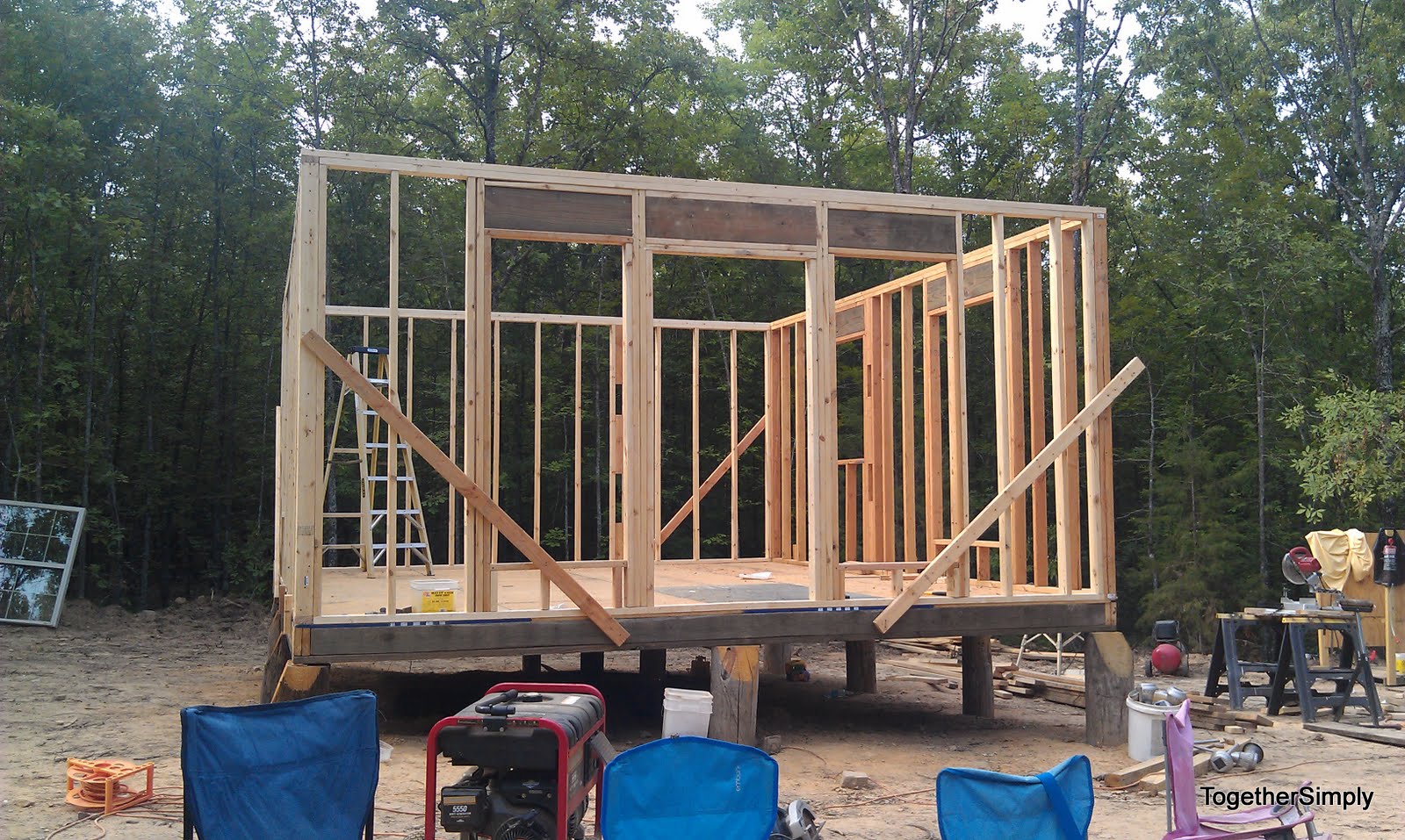 The next 2 weeks will be slow again until we build up the funds for the second floor decking. So we will probably go ahead and get a few sheets of OSB for the front so we can start on the front porch this week. The plan is the width of the house (16 ft) and 10 ft deep. Oh yes, another 160 sq ft, eventually covered porch. A little more room to spread out is always good!