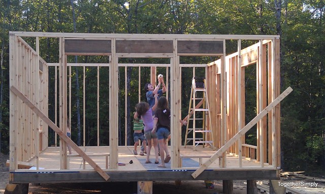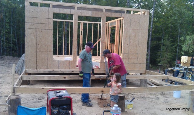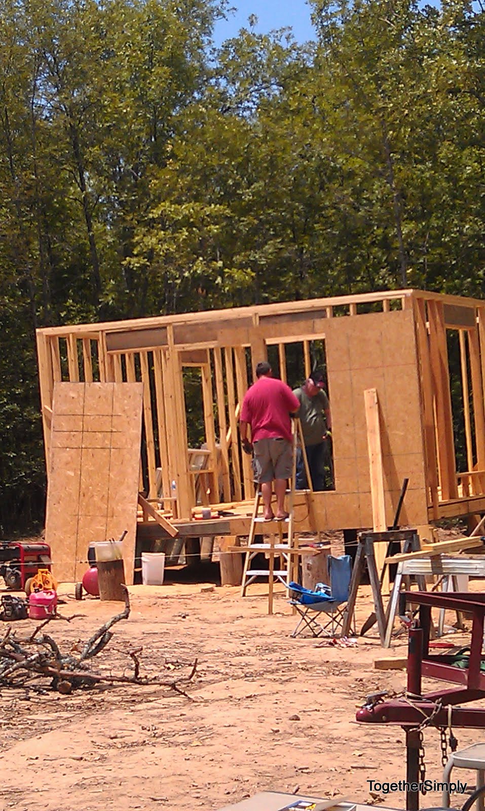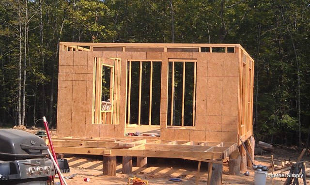 | OSB for the front wall. Gift of 7 sheets from my mom 🙂 Bou is spending the weekend with my mom and sis, so he is missing all this fun in 103 heat! |