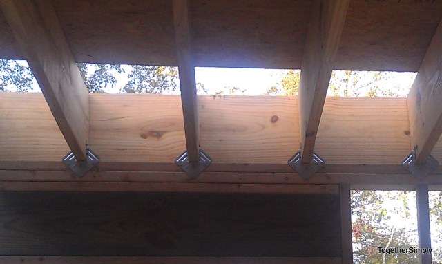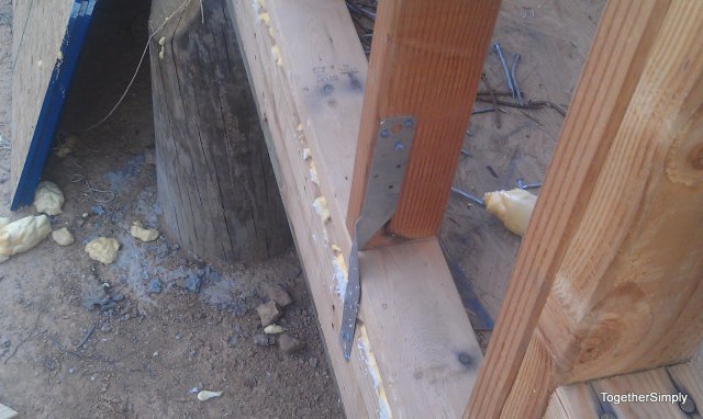 So off to work we go on the various tasks that need to be done. Finishing all the (so far) hurricane ties, spray foaming cracks, laying out and double checking the rafters length/angles… only to have the generator stop working and unable to restart. Sigh. So load up and back to my moms to cut everything.