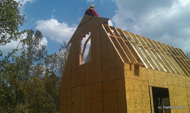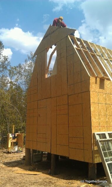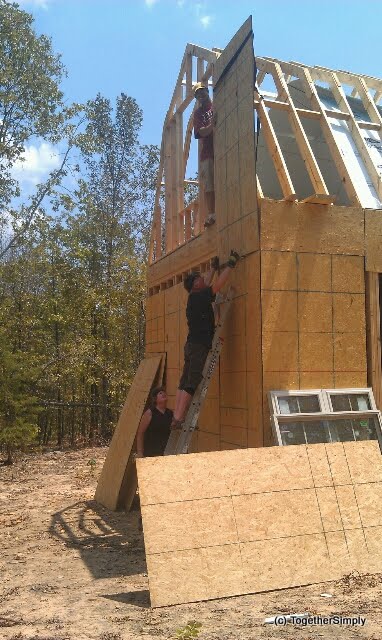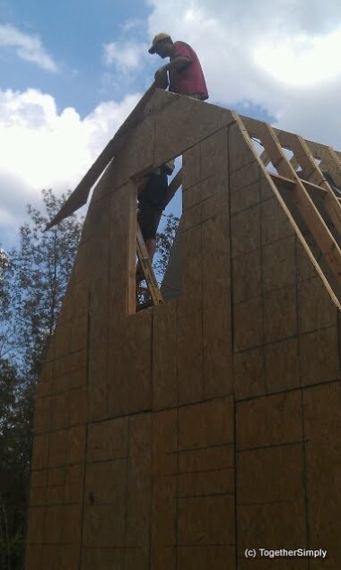 Then one of Mr. Man’s friends showed up and I forgot to get a picture :- Next time!! Since we do not have the windows yet, we just framed out for a large stock window from Lowes with the thinking that we can always make it smaller if a smaller window is purchased.