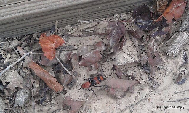 Then it was back to the house. Where I was finally able to capture a pic of these crazy bugs. They are apparently called a “Red Velvet Ant” but they are not an ant at all but a wasp! How crazy is that?! The females do not have wings and (obviously!) resemble an ant, hence the name. While they are also named “Cow Killer” they dont actually kill but have a pretty horrible sting. Good to know! And not near as scary as the “Kissing Bugs” we have around here!!