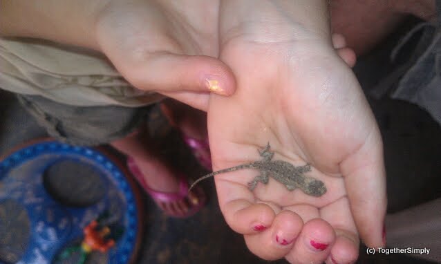 | Mr. Man found a baby lizard – and Little Missy was the only one that would hold it! |