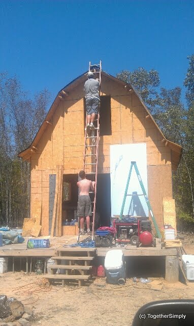 The roof is FINISHED!!! Well our part – remember we decided to hire out the metalwork 😉 Praise God!! Thank You for keeping Your Hand on my husband and son while I prayed constantly from the ground!! I am so glad that part is O-V-E-R!!