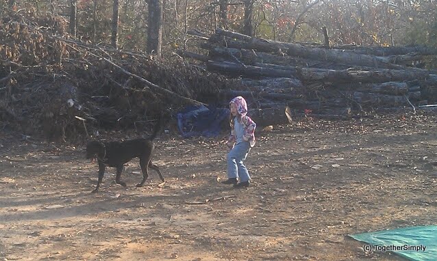 The children were, well children.  They did the usual busy work of picking up trash, scrap wood and nails.  Then Missy started playing with the dog.