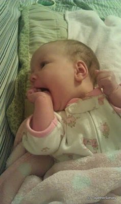 Trying to (re?)find her thumb – just like all of our other girls did.