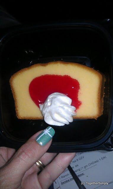 | Really!? Look familiar?! Yup, I got the same “Strawberry Cake Dessert” when I was in the hospital! At least it was a bigger slice this time. |