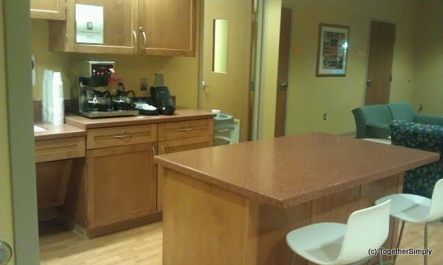 A “dining” room and a “living” room as well as 2 computers. AHmazing! There is also a huge playroom with rocking chairs. I know it probably sounds strange, but when your child is in the hospital you need those little spaces and moments to get away from the tubes and wires, flashing and beeping machines. Even more so when you are rooming in with your sick little one. I think they did wonderful with the upgrades! While I pray we never need to use them again, I know it is making it much easier for many parents.