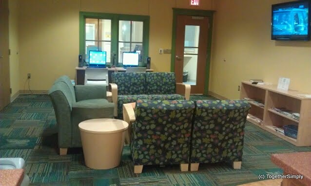 A “dining” room and a “living” room as well as 2 computers. AHmazing! There is also a huge playroom with rocking chairs. I know it probably sounds strange, but when your child is in the hospital you need those little spaces and moments to get away from the tubes and wires, flashing and beeping machines. Even more so when you are rooming in with your sick little one. I think they did wonderful with the upgrades! While I pray we never need to use them again, I know it is making it much easier for many parents.