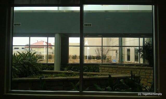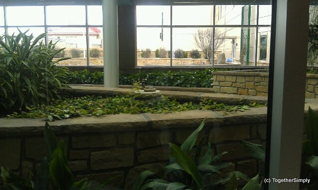 The “view” is to a roof top atrium with an outdoor playground! How neat is that?!