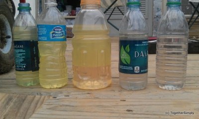 | Totally used this for a lesson – the bottles were filled from the tank right to left – notice the middle bottles separation of water and gas! |