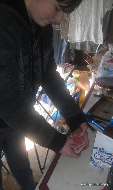 Bou figured it out! The Riffle Shuffle!! He has been practicing and practicing for his card tricks. Whoo hooo!!