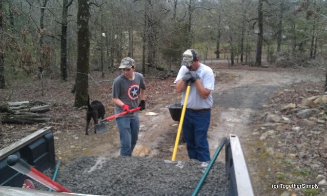Then Papa came the next day… And had to accept my challenge when I said the first load was too packed down and couldn’t be moved… So for the third day in a row, we were out there messing with the driveway. It sure does look and drive better!