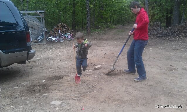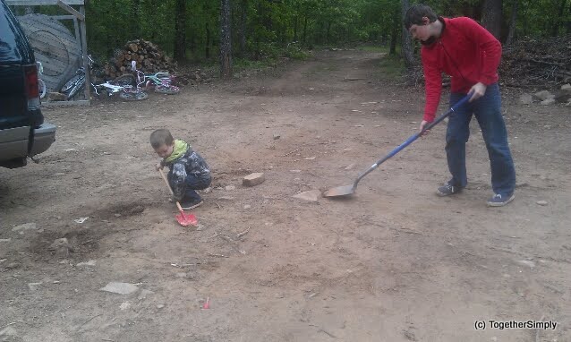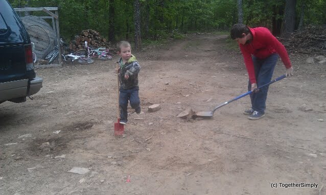 Mr. Littlest was being a bit of a rat one day. So I sent him out to help brother. He actually liked that idea – ran out of the house excited and went at it. Haven’t decided if his new love is a good thing or not…